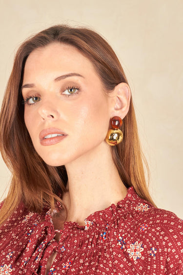 - Perle ambrée et sphère dorée martelée