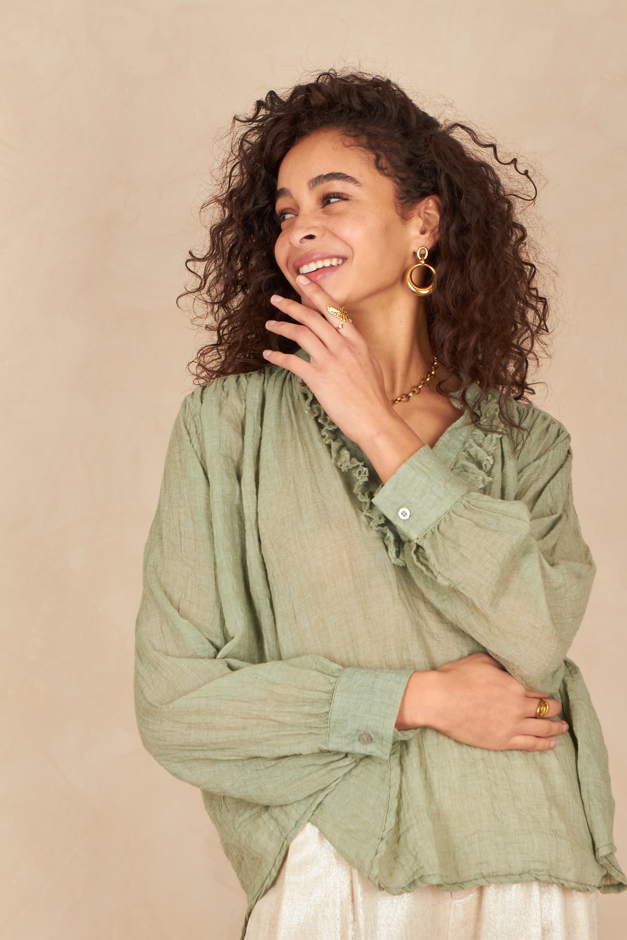 - Détails à volants sur l’encolure