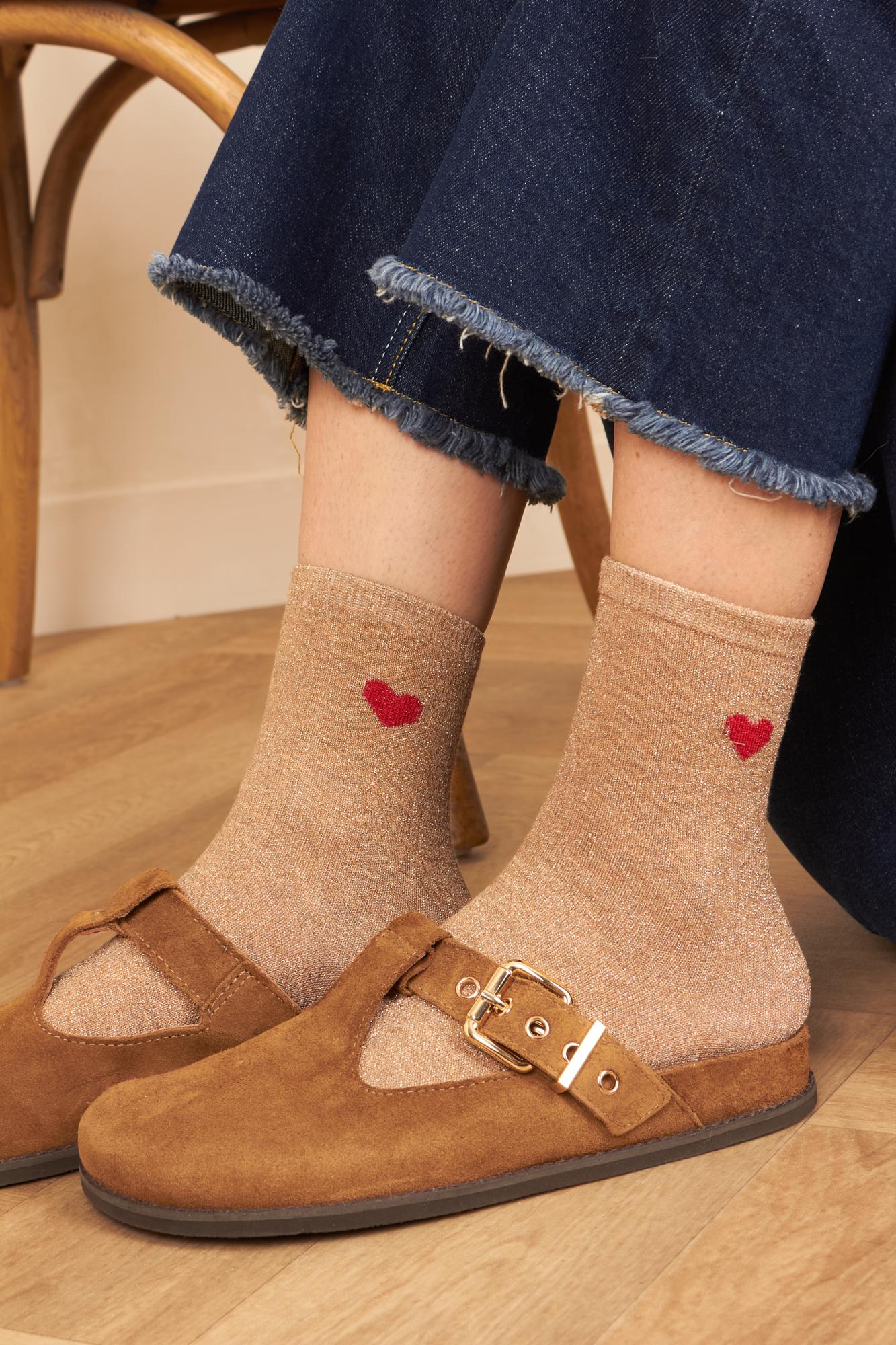 Chaussette Coeur Taupe /Lurex