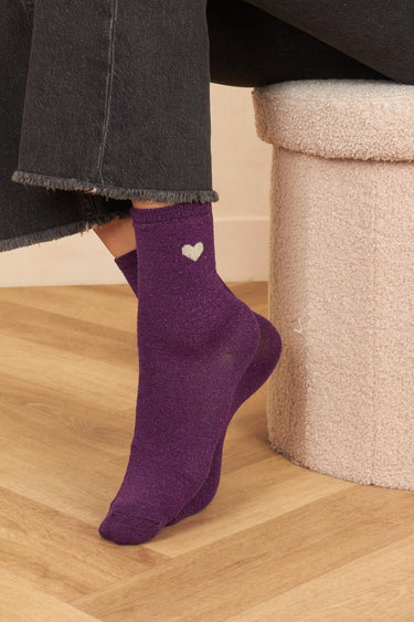 Chaussette Coeur Violet/Lurex