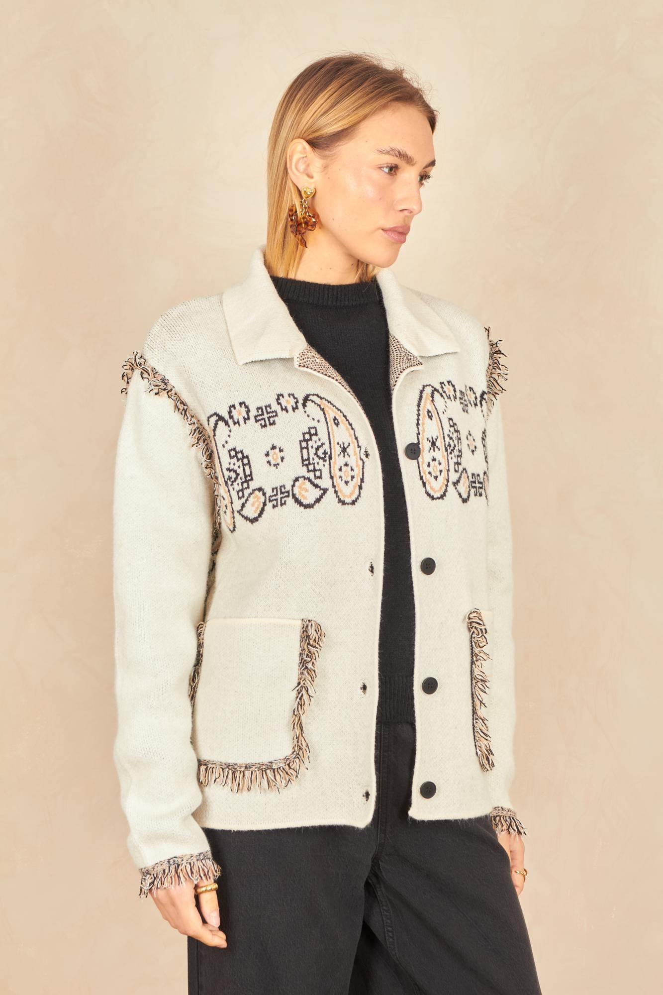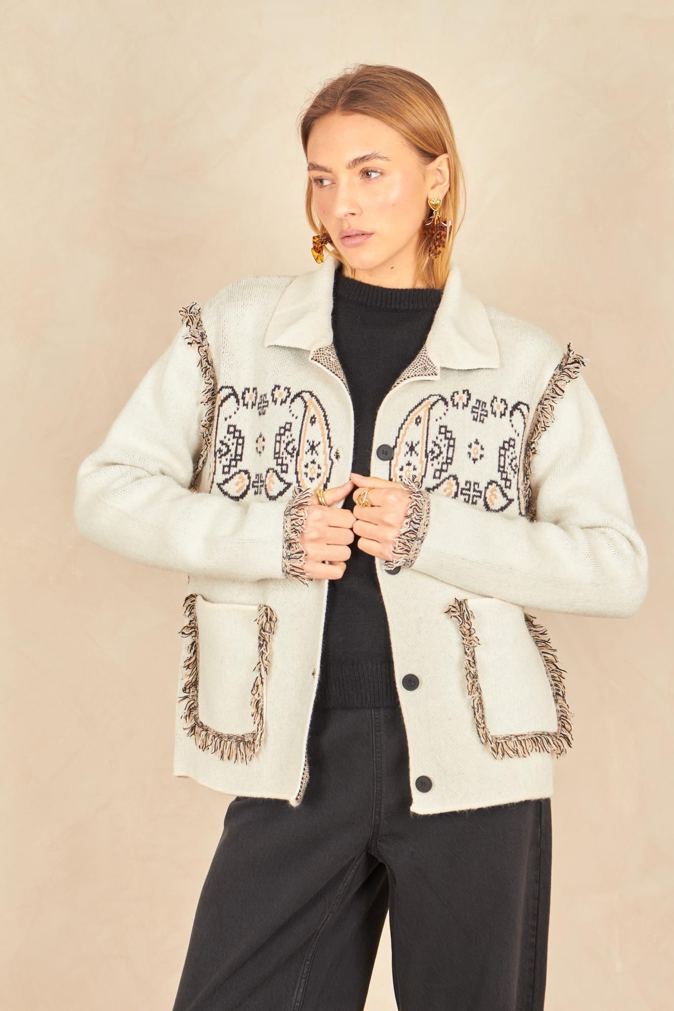 - Franges aux manches et poches