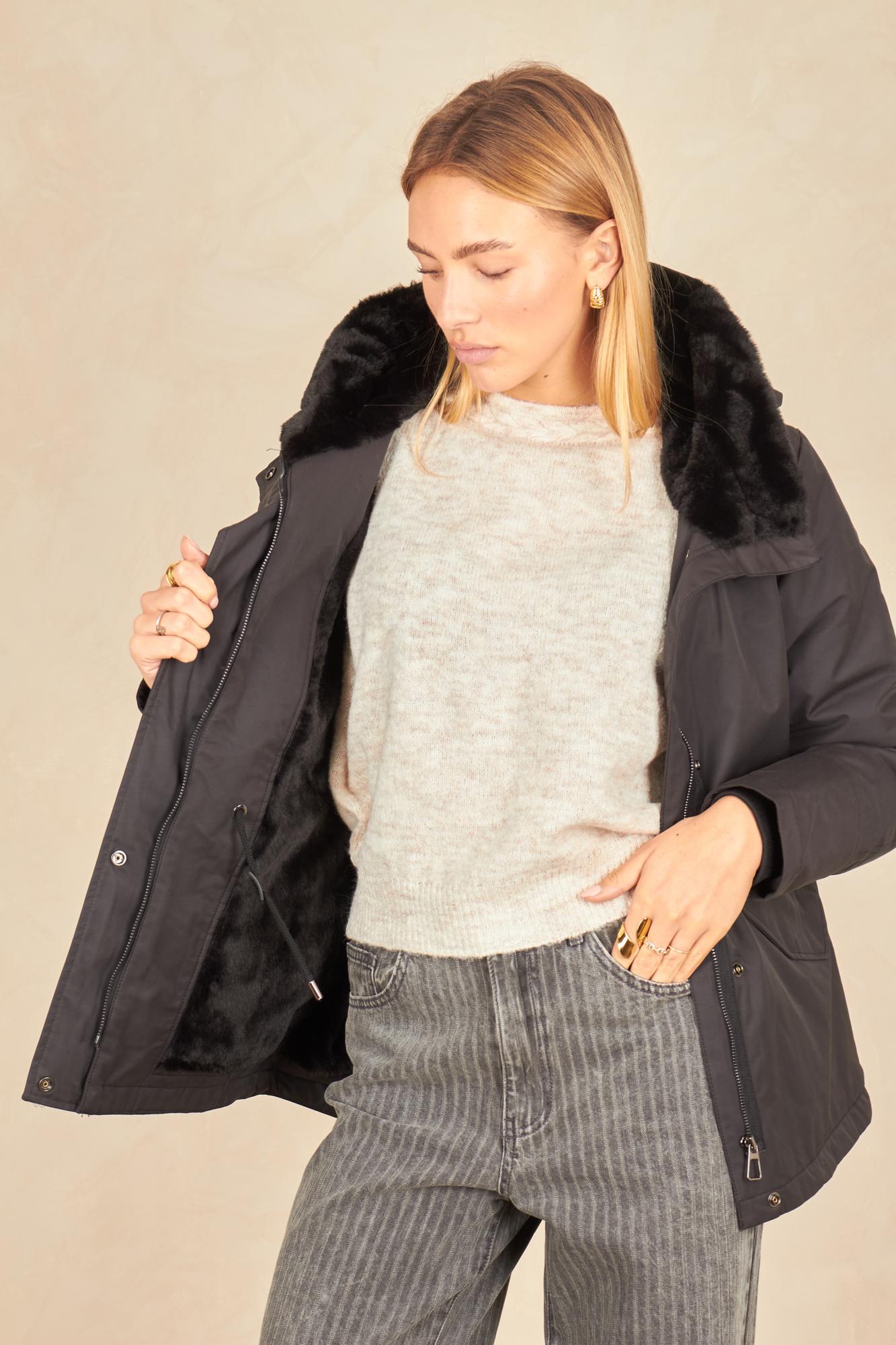 - Capuche doublée en fausse fourrure