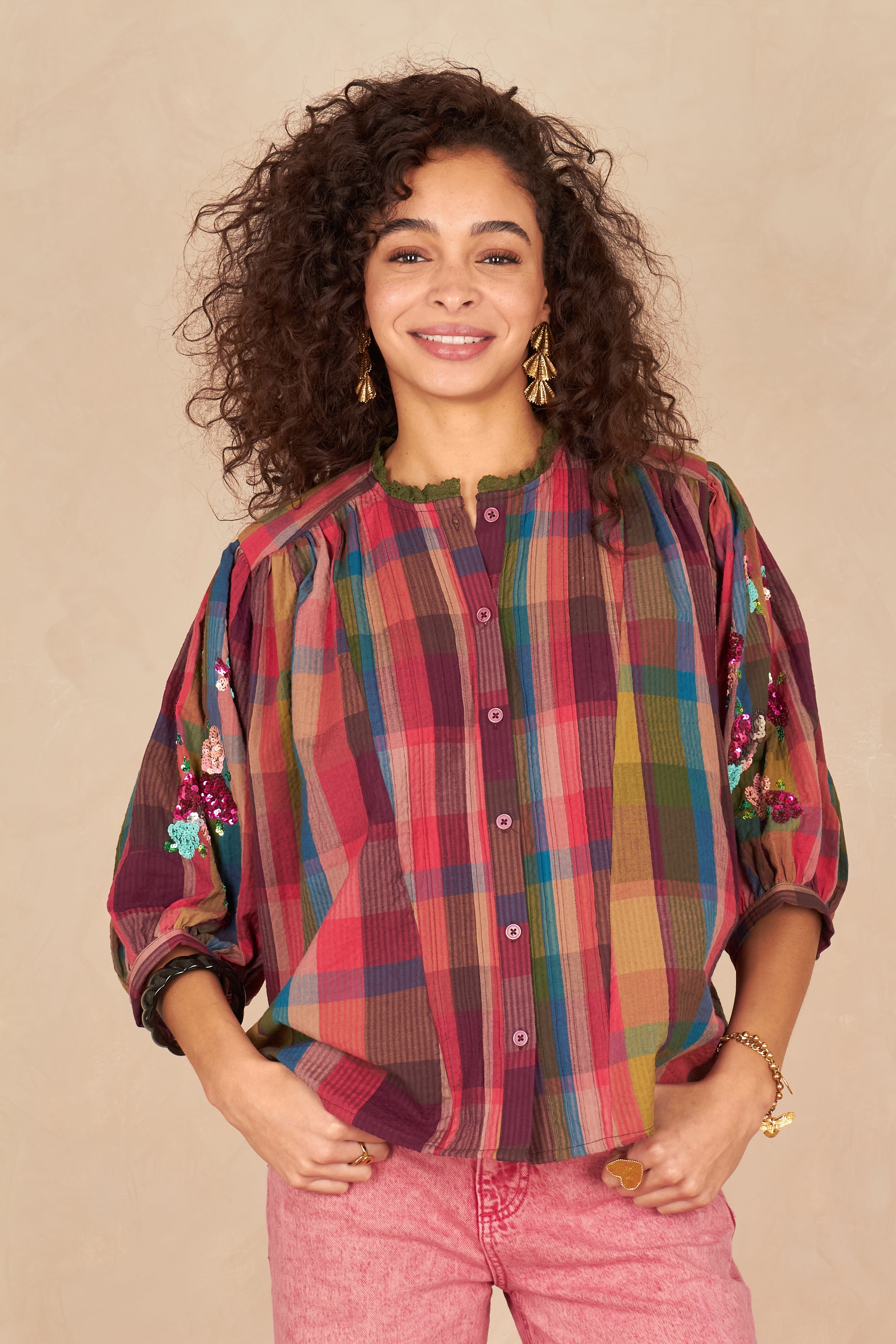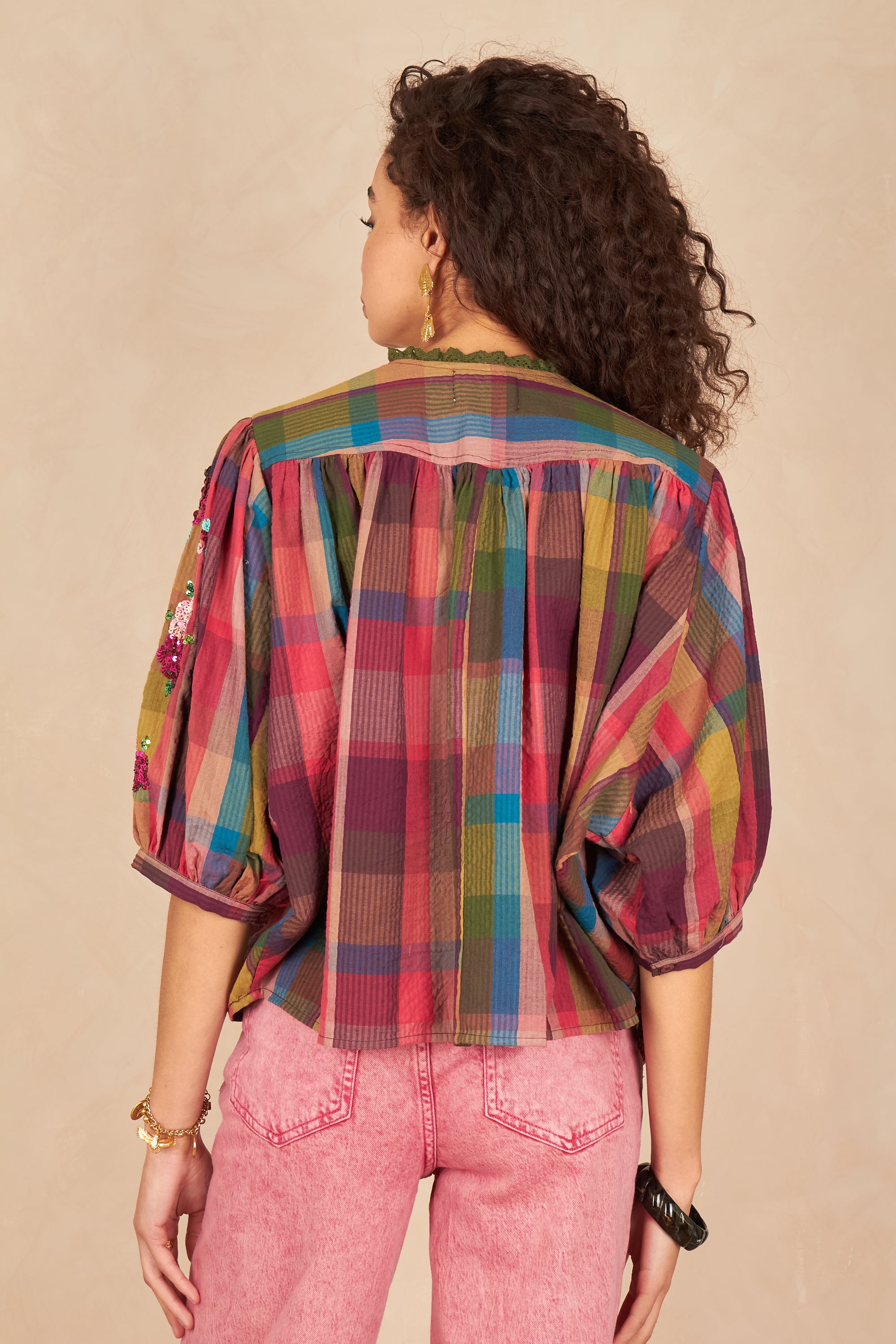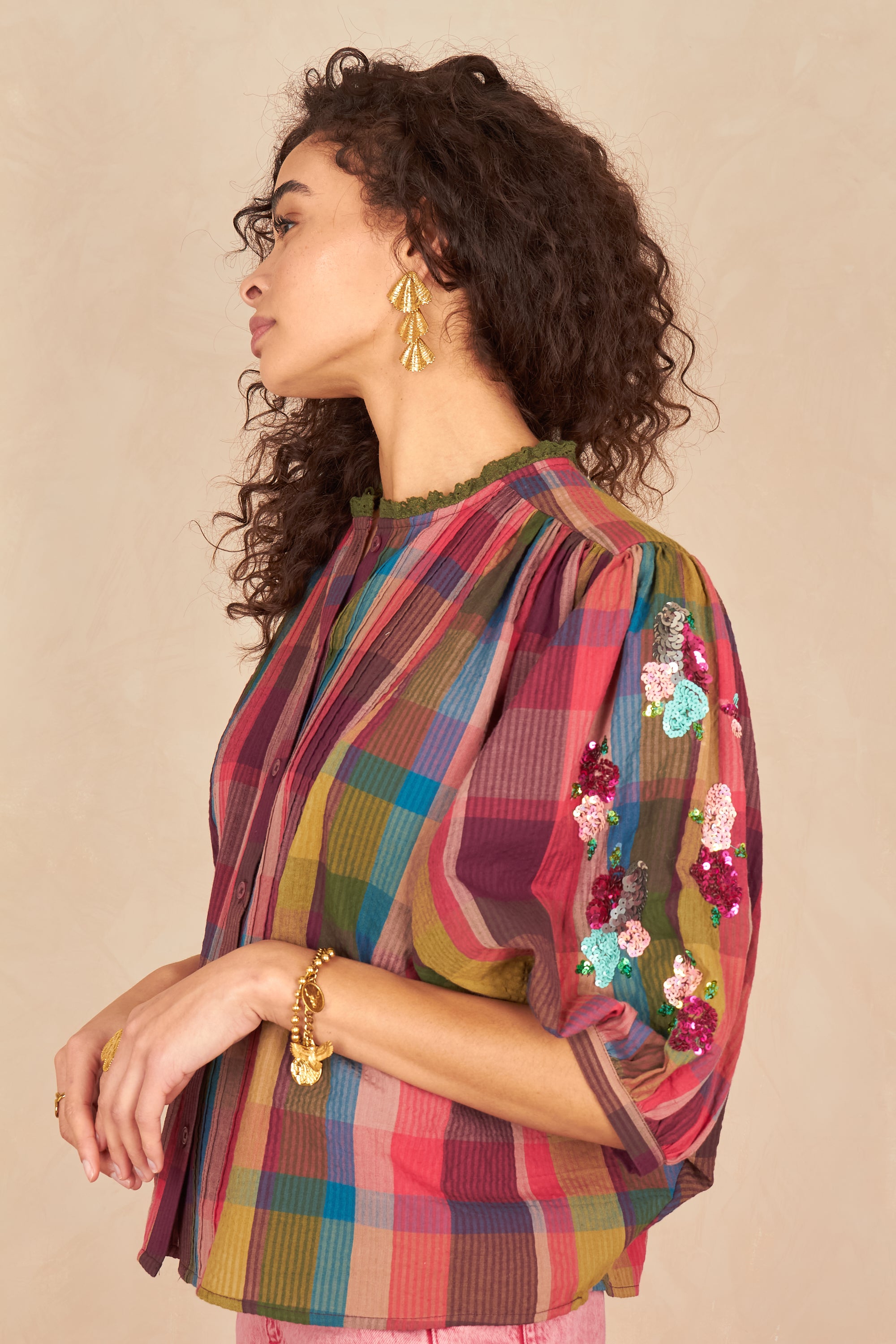 - Détails brodés et sequins sur les manches