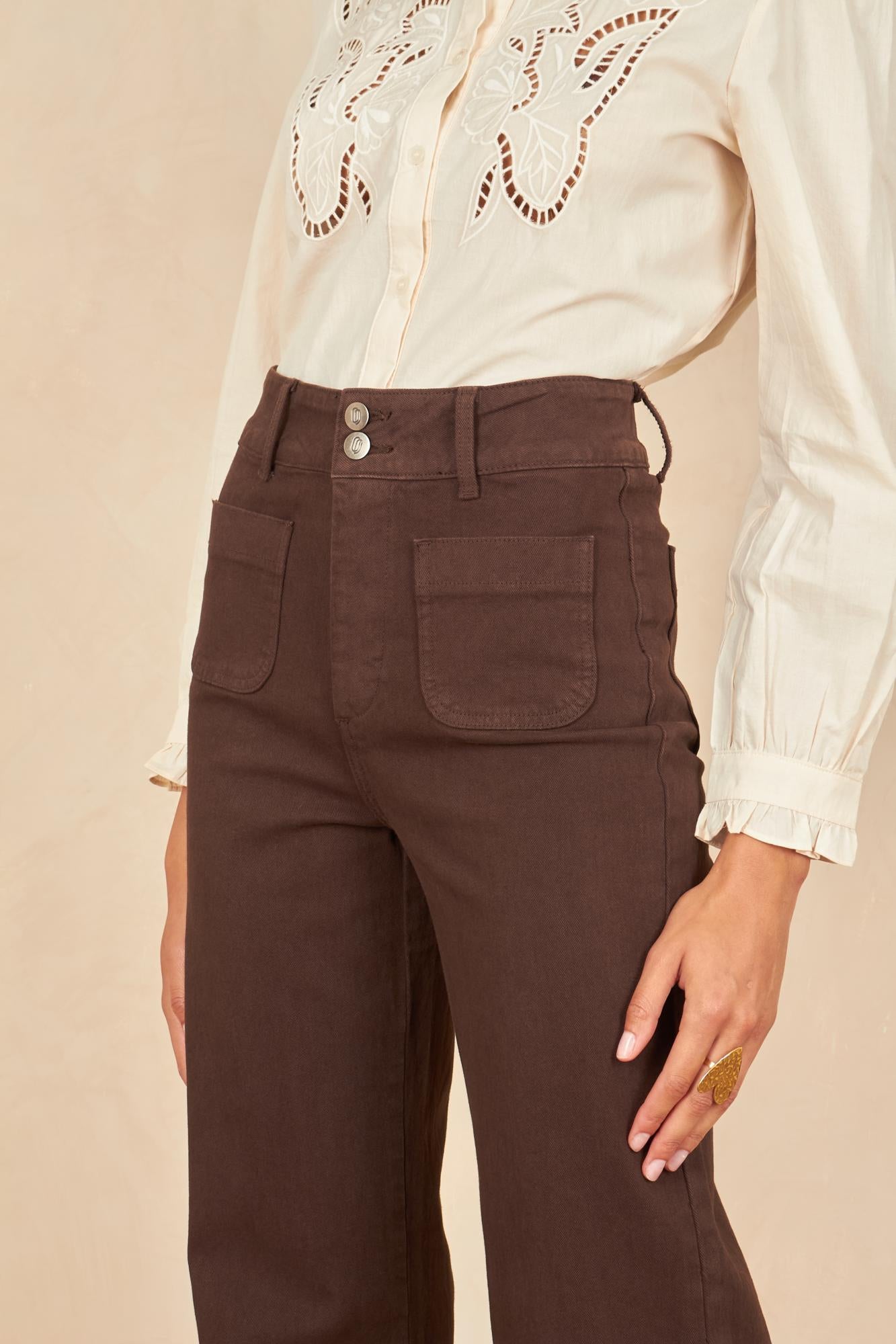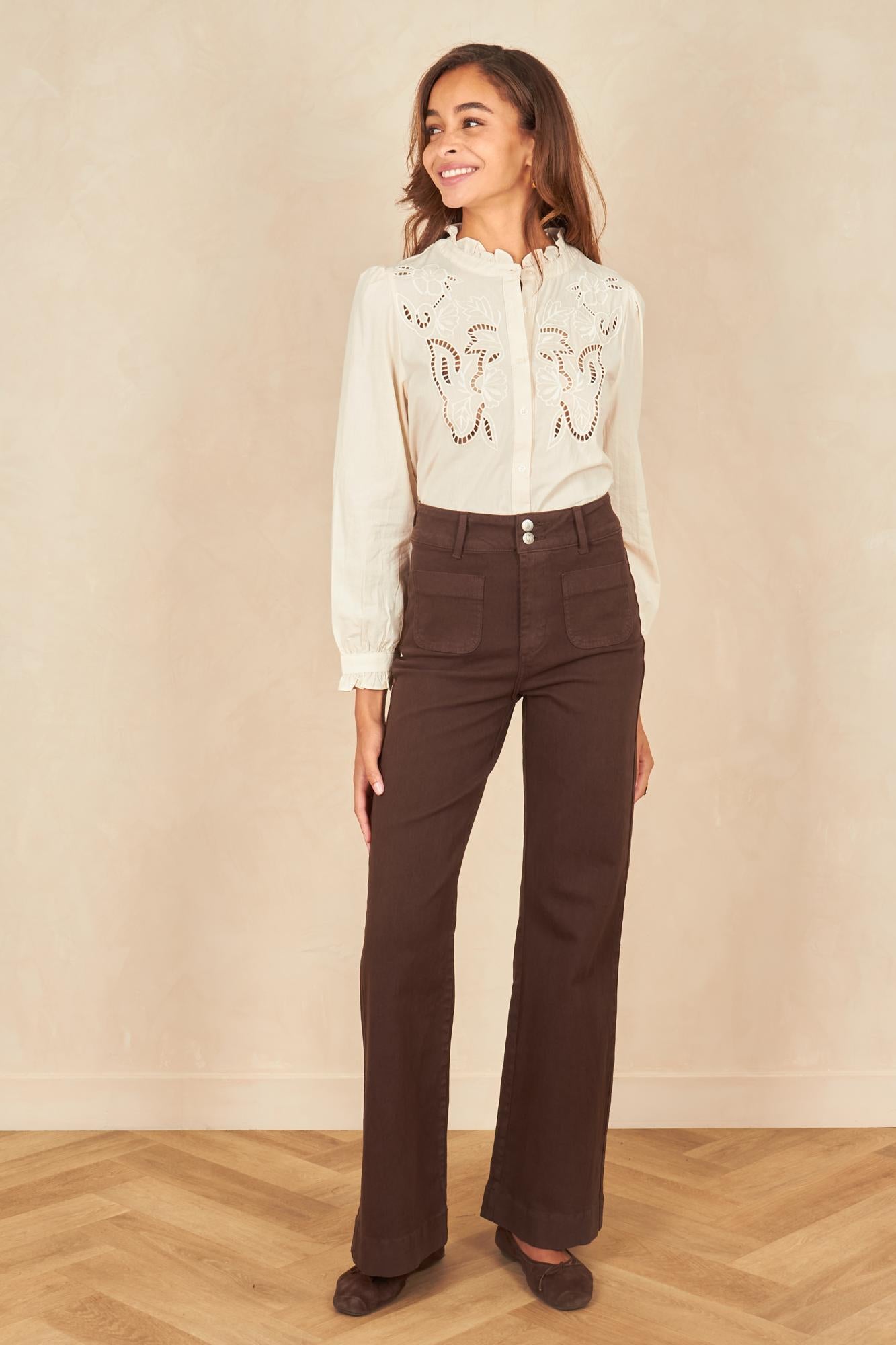 Céline mesure 1m77 et porte une taille 36 pour la couleur choco et brut.